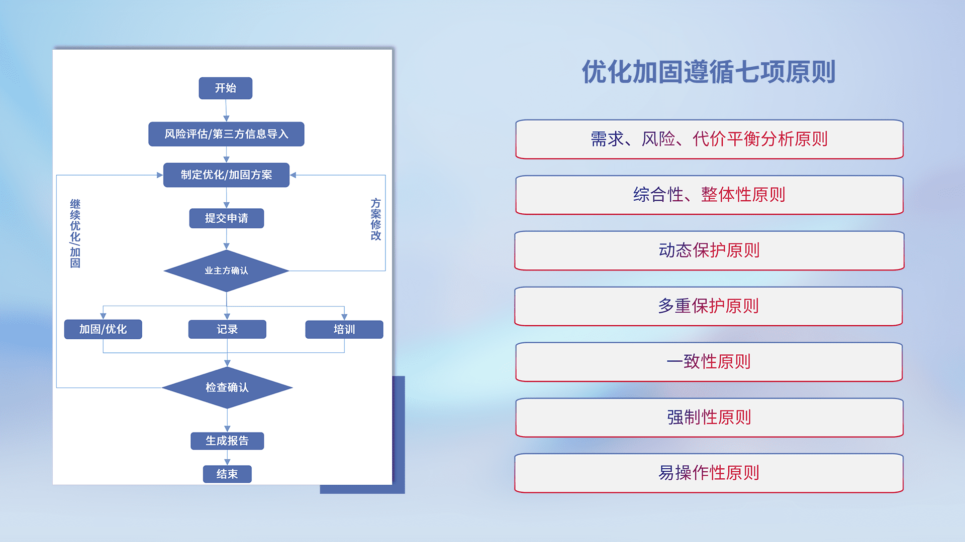 最大程度利用现有资产,,,,对评估发现的问题进行封堵与整改,,,防止漏洞被利用,,,,提升整体网络安全性,,,为客户带来高标准的优化加固服务。。